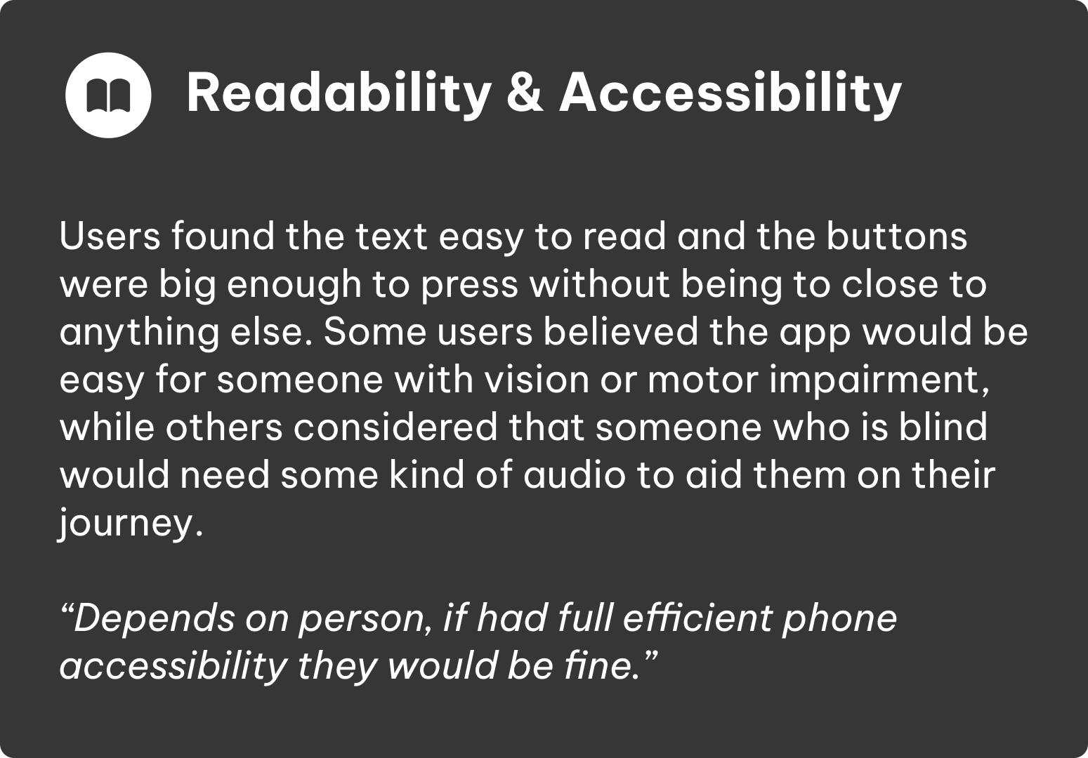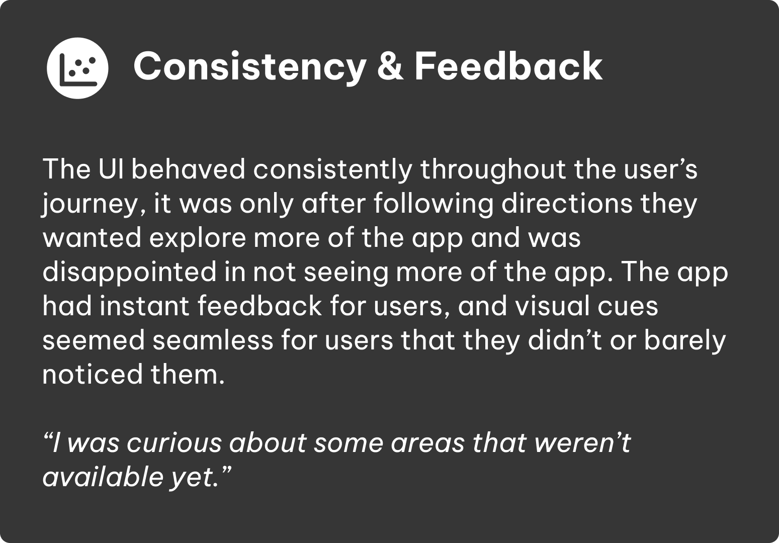 Through usability testing, designers and random users were able to identify and comment on small issues, such as adding back buttons to the survey and making minor typography adjustments. Users who expressed interest in using the app suggested features like swipe functionality for the saved section. Observing how they interacted with the app revealed areas where button usability and overall navigation could be improved.